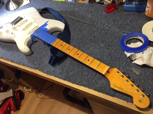 I got this neck from my 9th grade English teacher in the 70's. He had tried to dress the frets and messed them up and ordered a new neck back in the day. When I was a young adult, I fixed many of his Strats in his guitar collection and he said he had this neck if I wanted it. Duh? I took it and in the 80's did a proper fret job and made a body out of some wood I was reserving for a cello neck...but it was so cool, I made it into a guitar body. The black dove inlay is from a cello fingerboard. ( I like cellos!) The tailpiece is fixed for maximum sustain. This is the sweetest guitar I have.