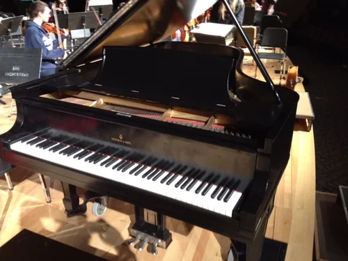 Back in the day when I taught orchestra, we did a concerto concert every Spring. We did six to eight movements from a Tschaikovsky, Mozart, Sibelius, etc. Violin Concerto as well as Viola, Cello, Bass and brass and woodwind bits. Also there were a lot of Beethoven Piano Concerti through the years. My last year, one fellow who was playing a piano solo, was not happy about the look of our piano. So I said get some kids together and I'll show you how to fix it. I asked him to organize a crew as there will be LOTS of sanding. We got it into the theater scene shop worked after school and weekends and got it done. His dad even helped when we sprayed it with black hydro lacquer. They learned some good lessons besides music.