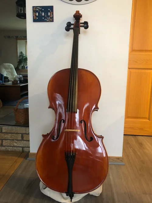 Cello in the Montagnana style. Slightly wider body, deep rich tone. This new cello is 4/4. It is hand made and has beautiful tonewood of solid spruce, maple and ebony. I set it up with Larsen soloist A and D and Spirocore Tungsten G and C strings. (Retail for strings is over $500 alone.) It has a Belgian style bridge and carbon fiber endpin. It plays exquisitely. All my customers have been very satisfied with their instruments. This would make a perfect graduation gift. If the ad is up, I still have it. I get to the Twin Cities often so call me if you want me to show it to you in the metro area. I just sold one recently after we met at Wooddale Church in Eden Prairie to try it out.